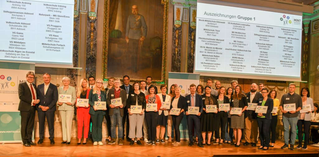 Verliehen wurden die begehrten MINT-Gütesiegel von Bildungsminister Martin Polaschek, dem Vize-Generalsekretär der Industriellenvereinigung Peter Koren dem Vizerektor der Pädagogischen Hochschule Wien Norbert Kraker und dem Präsidenten der Wissensfabrik Österreich Dr. Klaus Peter Fouquet.