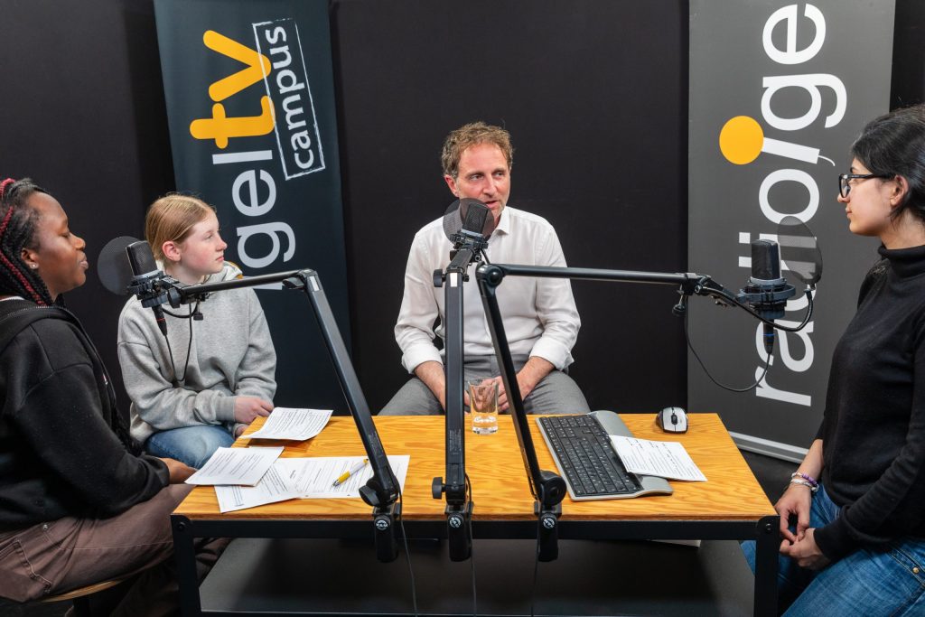 Schülerinnen im Gespräch mit Sozialforscher Thomas Lederer-Hutsteiner
