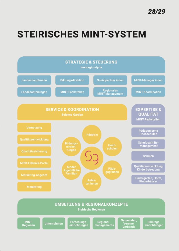 Beauftragt vom Land Steiermark, beschlossen vom steirischen Landtag und gemeinschaftlich umgesetzt mit Vertreter:innen aus Bildung, Forschung, Wirtschaft sowie den Sozialpartner:innen in Kooperation mit dem Science Garden als steirische MINT-Koordinationsstelle.